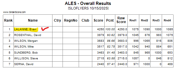No rain, light wind, a perfect morning…what’s not to like? Well for starters, very little lift. Once again Evan made the most of it with both best Overall and best Landing. Way to go Evan…Steve
